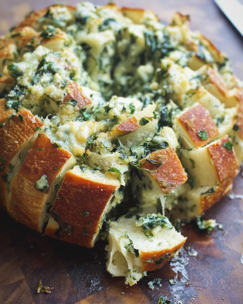 This comforting dish combines creamy spinach, artichokes, and melted cheeses within warm, fluffy bread. Perfect for gatherings or family dinners, it’s simple yet delightful.