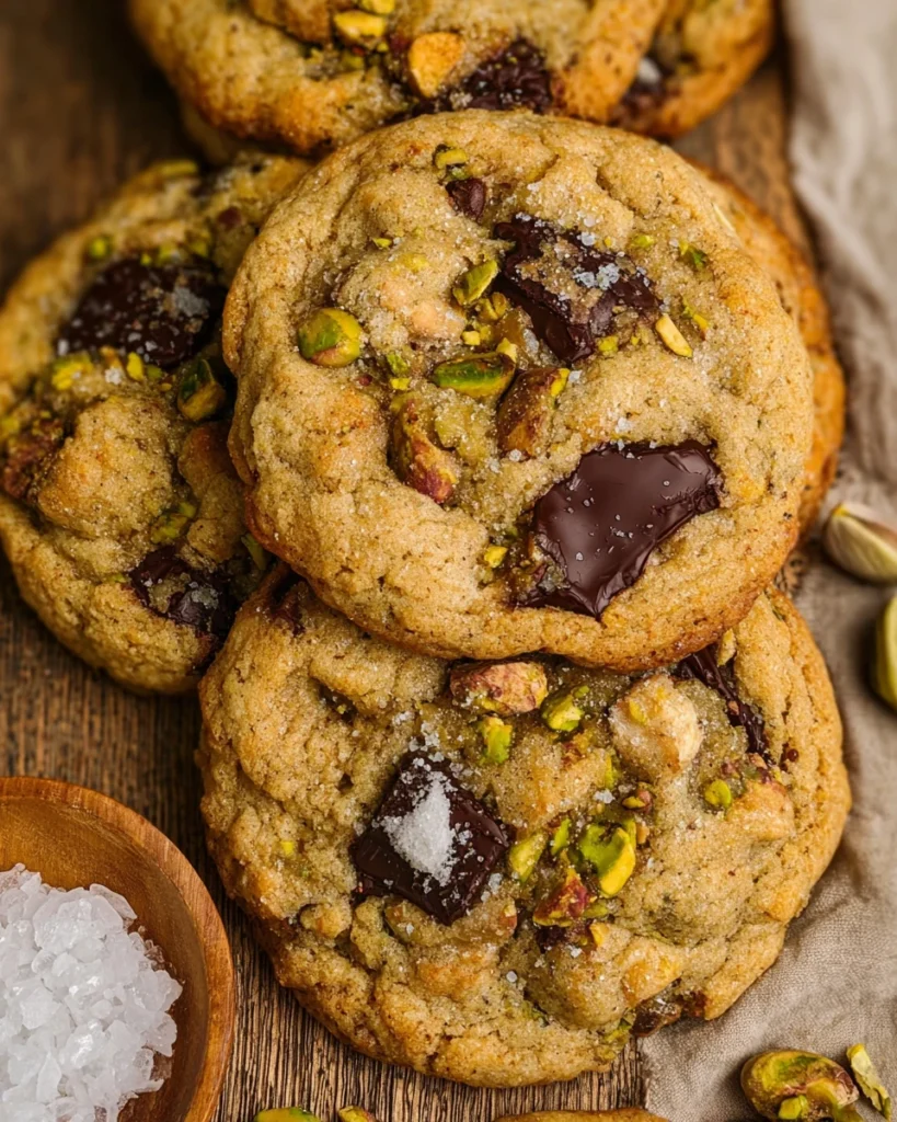 These cookies are vegan and quick to prepare, boasting a delightful mix of flavors with crunchy pistachios and melty chocolate chunks. Perfect for any occasion!